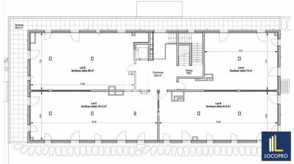 | Batiment - Lot | Etage | Type | Surface | Loyer annuel | Charges annuelles | Parkings | Disponibilité |