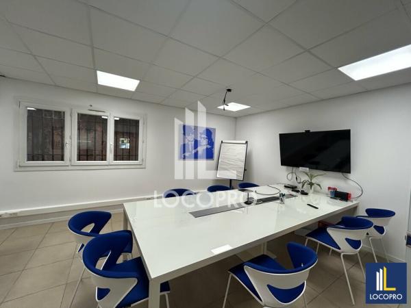 L'ensemble bénéficie d'une salle de réunion de belle dimension, parfaitement adaptée aux réunions internes, aux rendez-vous clients ou aux présentations professionnelles. Dès l'entrée, un espace d'accueil valorise l'image de l'entreprise et assure une réception qualitative des visiteurs. Deux sanitaires séparés complètent l'aménagement, conformément aux standards des surfaces tertiaires.