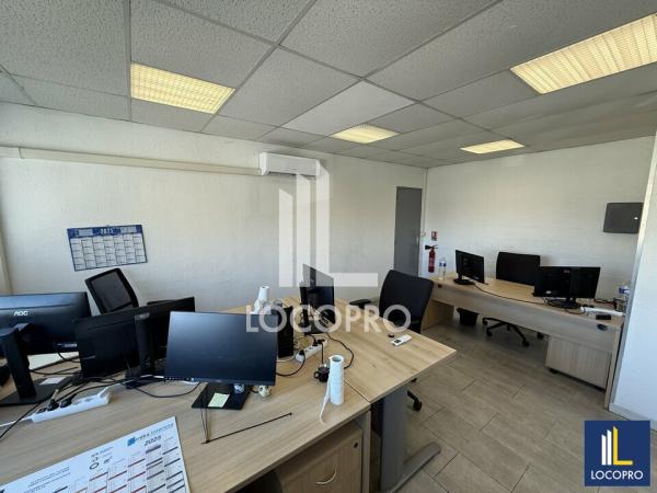 Ce local d'activité offre une surface totale d'environ 578 m², modulable à partir de 280 m², permettant d'adapter l'espace en fonction de vos besoins opérationnels. Au rez-de-chaussée, l'entrepôt présente environ 380 m² avec une hauteur sous plafond de près de 7 mètres, garantissant une capacité de stockage importante et une grande souplesse d'aménagement. Une partie bureaux et accueil d'environ 80 m² complète ce niveau, offrant un espace de travail fonctionnel pour l'accueil, la gestion administrative ou la coordination des flux. À l'étage, un plateau de bureaux d'environ 118 m² permet d'accueillir une équipe commerciale, un service administratif ou un espace de réunion, offrant ainsi une organisation fluide entre l'activité opérationnelle et les fonctions support.