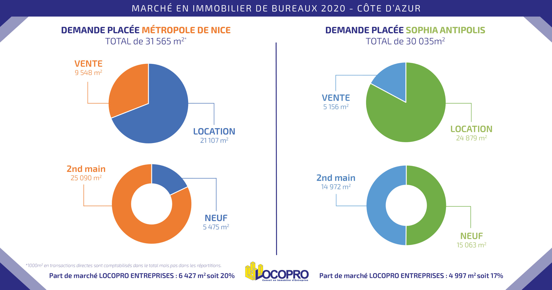 Découvrez les chiffres de l'année 2020 en immobilier de bureaux sur la Côte d'Azur.